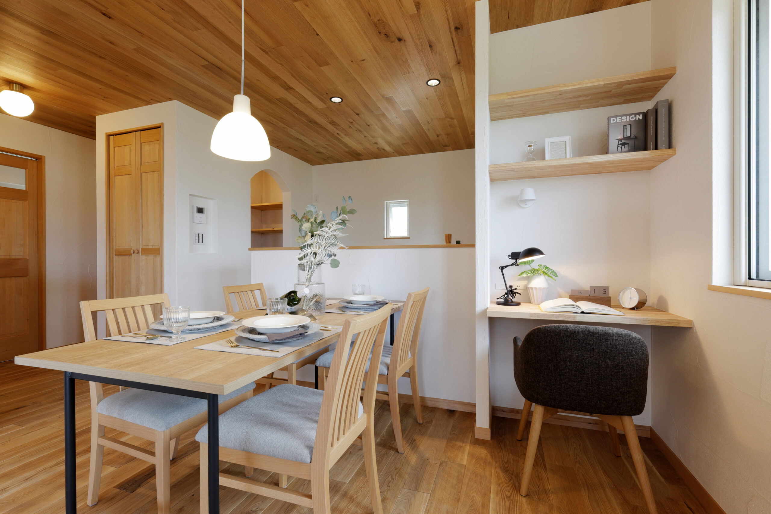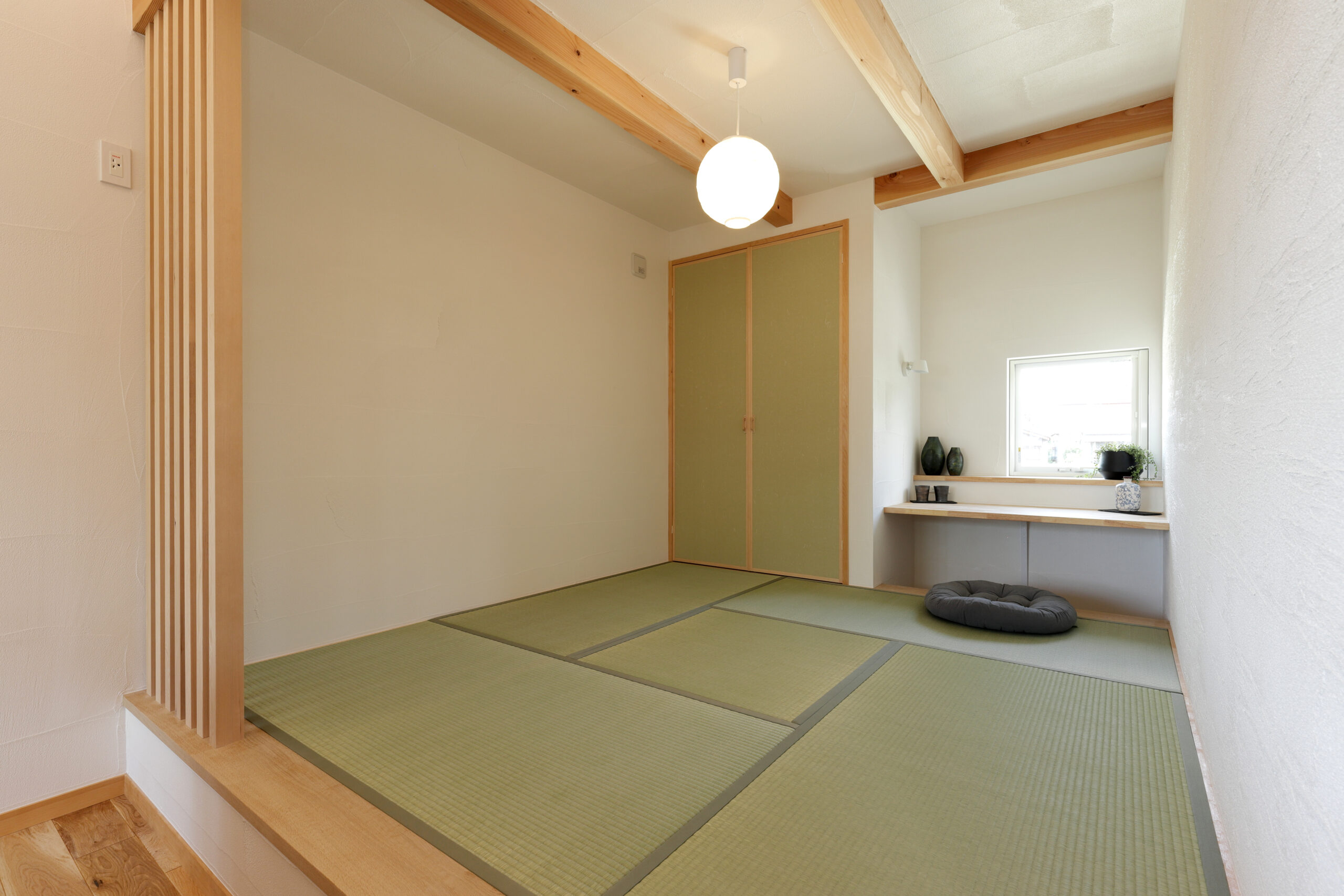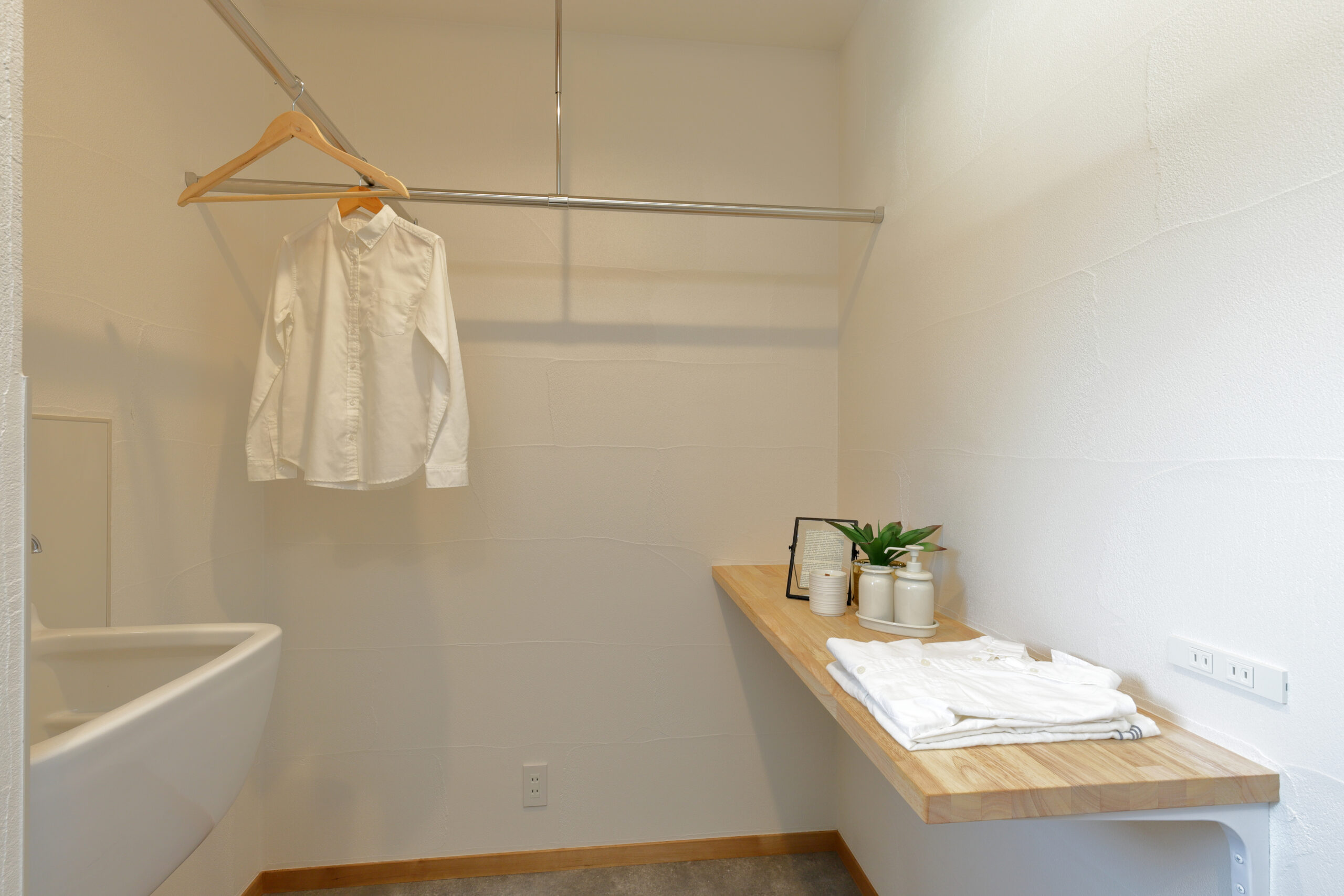小上がりの畳コーナーやユーティリティスペース、動線に沿った収納やランドリールームなど、暮らしやすさへの工夫を随所に盛り込みました。
